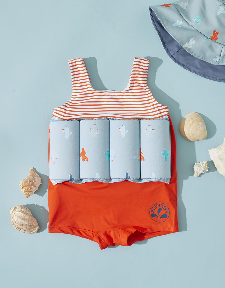 Le maillot bouée imprimé cactus est spécialement étudié pour coordonner les mouvements de bras et de jambes de votre enfant dans l’eau.