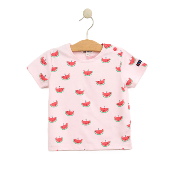 T-shirt de bébé décliné en 2 jolis imprimés Sun et Pastèque. Il est confectionné en 100%coton. Sa coupe est classique, il se ferme par 2 jolis boutons sur l’épaule gauche au porté.