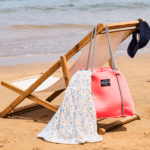 Une ambiance fraîche et décontractée avec ce foulard fluide de BATELA à l’esprit nautique avec ses petites impressions queues de baleines