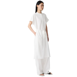 Kohara la robe Tantä à manches courtes de coupe oversize, confectionnée en polyester élasthanne extensible dans les 4 sens et à séchage rapide. La matière est fluide et chic. Ses détails incluent un col mandarin, un pli central sur le devant, des boutons en résine dissimulés à l’ouverture du devant et une taille ajustable grâce à une fine ceinture positionnée dans de fin passants et des fentes hautes sur les côtés. Kohara est la robe pour un look estival qui respire l’élégance et la légèreté.