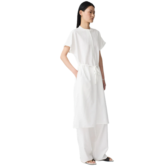 Kohara la robe Tantä à manches courtes de coupe oversize, confectionnée en polyester élasthanne extensible dans les 4 sens et à séchage rapide. La matière est fluide et chic. Ses détails incluent un col mandarin, un pli central sur le devant, des boutons en résine dissimulés à l’ouverture du devant et une taille ajustable grâce à une fine ceinture positionnée dans de fin passants et des fentes hautes sur les côtés. Kohara est la robe pour un look estival qui respire l’élégance et la légèreté.