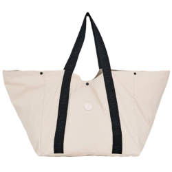 Manan est un sac à main spacieux et pliable qui se range dans sa propre poche intérieure. Fabriqué en tissu 100 % recyclé, il est déperlant et possède un revêtement en polyuréthane sur la face intérieure du tissu. Parmi ses caractéristiques supplémentaires, on retrouve deux anses personnalisées TANTÄ et des boutons pressions en résine permettant d’ajuster sa taille