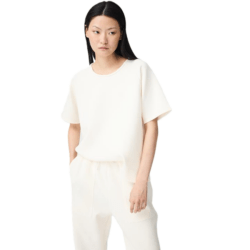 Olufu est un sweat-shirt ras du cou à manches courtes de Tantä confectionné en matière interlock à séchage rapide, modèle de coupe ample et courte. Le tissu est à double face, ce qui donne au vêtement beaucoup de structure et une impression de luxe supplémentaire. Ses détails incluent des manches raglans, des fentes sur le côté et un logo imprimé ton sur ton. Ce top est le basique qu’il vous faut pour vous sentir en confiance dans n’importe quelle tenue.