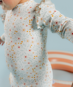 La combinaison protection UV imprimée foral protège votre enfant des rayons UVA et UVB. Votre enfant est prêt à partir en quête d’aventures aquatiques !